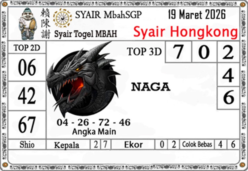 SYAIR PREDIKSI KELUARAN HK, 19-Mar-2026