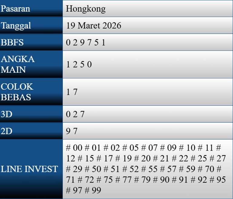 Prediksi Syair HK Pools adalah sebuah analisa atau ramalan angka yang didasarkan pada pola dan situasi tertentu dalam permainan togel Hongkong Pools. Prediksi syair ini sering digunakan oleh para pemain togel sebagai acuan dalam memasang taruhan.